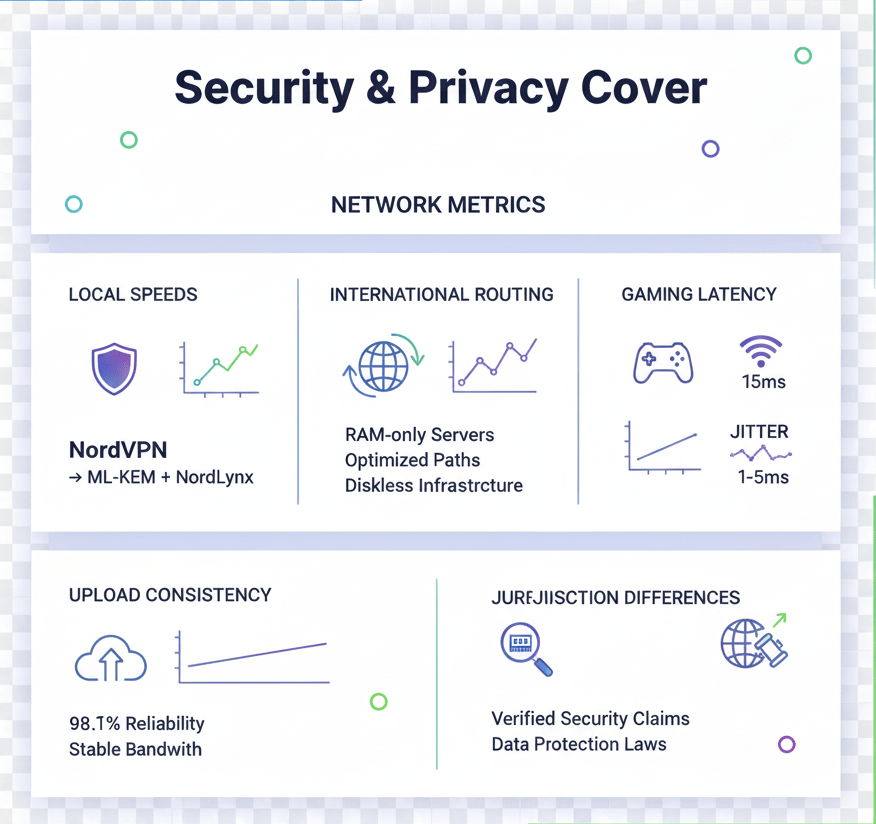 This snapshot breaks down the most important areas users care about — speed, protocols, encryption, streaming reliability,